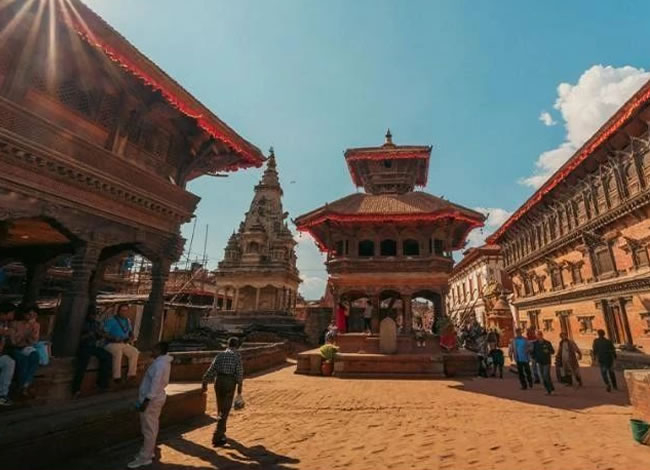 早餐后前往帕坦杜巴廣場(chǎng),廣場(chǎng)呈長(cháng)方形,東邊是皇宮,塔萊珠女神廟、金廟、曼嘉噴水池等,西 邊則是造型各異的廟宇,其中最為著(zhù)名的是黑天神廟、黑天寺、哈里??ㄉ駨R、毗濕奴神廟、 毗斯瓦納特神廟等。其建筑藝術(shù)也非常高超、精湛,在世界建筑史上占有一席之地,被稱(chēng)為 "露天的博物館"。游覽始建于 2000 多年前的世界上最輝煌的佛教寺廟“斯旺那布廟”(Swayambhunath 世界文化遺產(chǎn),俗稱(chēng)“猴山”) 【約 1.5 小時(shí)】,來(lái)這里祭祀 的有尼佤爾尼姑、藏族喇嘛、佛教及印度教之貴族朝圣者,也許斯旺那布塔是觀(guān)察尼泊爾各個(gè)宗教融洽相 處的最佳地方。整體建筑古樸,味道十分濃郁,民房的窗飾極其繁復,寺廟建筑的細部一樣精細。寺廟、 佛塔、銅飾等組合在一起,再加上成群的鴿子飛來(lái)飛去,成群的猴子蹦來(lái)蹦去,形成獨特的景觀(guān)。游覽始建于 13、14 世紀的巴德崗杜巴廣場(chǎng)(Bhaktapur Durbar Square 世界文化遺產(chǎn))【約 2 小時(shí)】:55 窗宮(The Palace of 55 windows)、 巴特薩拉女神廟(Batsala Devi)、尼亞塔波拉塔(Nyatapola Temple)等。這里可以選購著(zhù)名的巴德崗木雕工藝品和陶制品。十五世紀以后,巴德崗杜巴廣場(chǎng)是巴德崗的城市核心,這里有長(cháng)達500 年馬拉王朝的王宮,包括許多各具藝術(shù)特色的宮殿、庭院、寺廟、雕像等,被譽(yù)為“中世紀尼泊爾藝術(shù)的精華和寶庫”,素有“露天博物院”之稱(chēng),展現出一幅中世紀尼泊爾的瑰麗圖畫(huà)。后前往加都以東 30 公里的美麗的尼瓦爾人村莊納加闊特(海拔:2000 米)。這里以壯美的喜馬拉雅雪山日出、日落而聞名,是著(zhù)名的喜馬拉雅觀(guān)景臺。因為這里是加德 滿(mǎn)都山谷觀(guān)賞喜瑪拉雅山脈視角最廣且最佳的地方。在這里觀(guān)賞喜瑪拉雅雪山全景,喜馬拉 雅雪山就像一條玉帶橫掛在空中。如果能見(jiàn)度高,還能看到世界第一高峰-珠穆朗瑪峰。這 里正對著(zhù)喜瑪拉雅山脈的二十多座 6000 米以上、包括珠珠穆朗瑪峰、雅安納普爾納山峰、 岡底斯圣山等世界著(zhù)名雪峰的連綿山丘。(在此可以看到十座世界最高山峰中的五座)。傍晚在納加闊特度假 村內用晚餐,品餐觀(guān)景,是有多么的愜意舒適!